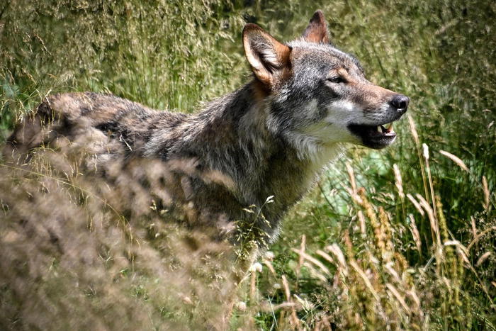 epa08542300 A Grey Wolf (canis lupus) is seen in the wild at the Lower Rhine wolf region of Schermbeck, Germany, 12 July 2020. The Schermbeck region has been designated a wolf territory since October 2018. The wolf 'GW954f, better known as Gloria, who lives there, has often snatched sheep and goats from pastures. EPA/SASCHA STEINBACH