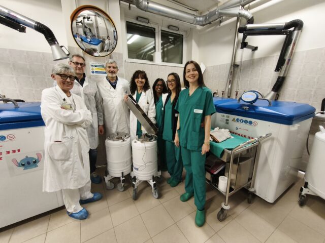 Contenitori refrigeranti di ultima generazione e strumentazioni all’avanguardia sono stati donati al Centro di Criopreservazione delle cellule staminali emopoietiche e dei linfociti dell’Uoc Medicina trasfusionale di Borgo Roma, diretta dal dott. Giorgio Gandini. La donazione del valore di 71 mila euro è stata fatta dall’associazione ADOCES (Associazione Donatori di Cellule Staminali). La donazione di cellule staminali è un vero e proprio dono salvavita, di valenza mondiale, poiché le cellule donate vengono destinate ad ammalati di tutti i continenti. I dispositivi servono a Criopreservare, stoccare e conservare per lunghi periodi le sacche contenenti cellule staminali, ma anche per il trasporto. Nei laboratori di Borgo Roma, le cellule staminali donate vengono raccolte, lavorate e poi spedite in tutto il mondo ai malati individuati dal Registro internazionale. Nell’ultima settimana sono state inviate in Nuova Zelanda, ma anche in Canada e Australia. Con una media di una volta alla settimana, il contenitore specifico viaggia verso l’America. Il Veneto ha un ruolo di spicco sul panorama nazionale: circa il 30 % delle donazioni di cellule staminali fatte in Italia viene fatto nella nostra regione, e in buona parte a Verona. La Medicina Trasfusionale dell’Azienda ospedaliera è il principale riferimento per Veneto e Trentino Alto Adige, ormai da anni si raccoglie circa il 25% delle cellule staminali donate in Italia dal Registro di donatori non consanguinei.