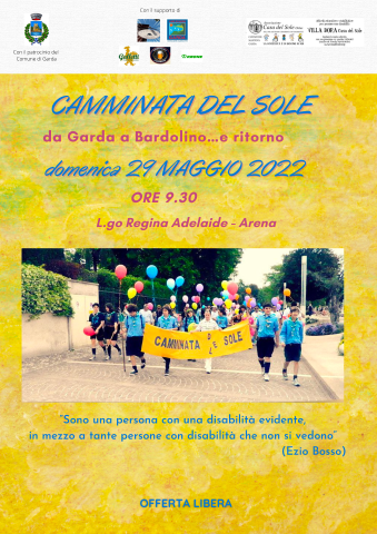 Questa domenica, un appuntamento in compagnia dell’inclusione con ‘Camminata del sole, da Garda a Bardolino… e ritorno’. Una manifestazione podistica non competitiva, organizzata dal Centro diurno Villa Dora e che prende inspirazione dalla grinta e dalle parole di Ezio Bosso, il pianista-compositore morto nel 2020 a soli 48 anni, a causa di una malattia neurodegenerativa da cui era affetto dal 2011. La gara, prevede un percorso di 6 chilometri, tra i due paesi. Tutti possono parteciparvi, ma si richiede un’offerta libera a favore del Centro diurno. L’obiettivo di questa campagna all’insegna dell’inclusione che torna dopo gli anni di stress, chiusure e divieti post pandemia, è quella di condivide un’esperienza più che positiva insieme a persone con disabilità. Il tutto, nel pieno rispetto delle normative anti contagio.