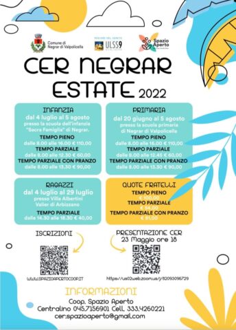 Sono aperte le iscrizioni ai centri estivi per i bambini della scuola dell’infanzia e della scuola primaria e per i ragazzi della scuola media e del primo anno di scuola superiore. Per quanto riguarda i più piccoli, le attività saranno dal 4 luglio al 5 agosto. Il costo sarà di 110 euro per il tempo pieno, 60 per il parziale e 90 per il parziale con pranzo. Le primarie, invece, avranno la possibilità di parteciparvi dal 20 giugno al 5 agosto sempre con gli stessi prezzi. Infine, per quanto riguarda i ragazzi un po’ più grandi, i centri estivi saranno dal 4 al 29 luglio con l’opzione di frequentarli per un tempo solo parziale, al costo di 90 euro. Il modulo di iscrizione, lo potete trovare online e va compilato entro e non oltre il 25 maggio. Si informa anche che è possibile presentare una domanda di riduzione/esenzione delle quote di iscrizione, inviando il ‘Modulo esenti Cer’ all’indirizzo servizisociali@comunenegrar.it. Requisito fondamentale? L’ISEE non superiore a 10 mila euro.
