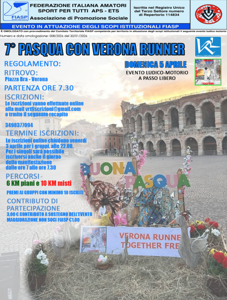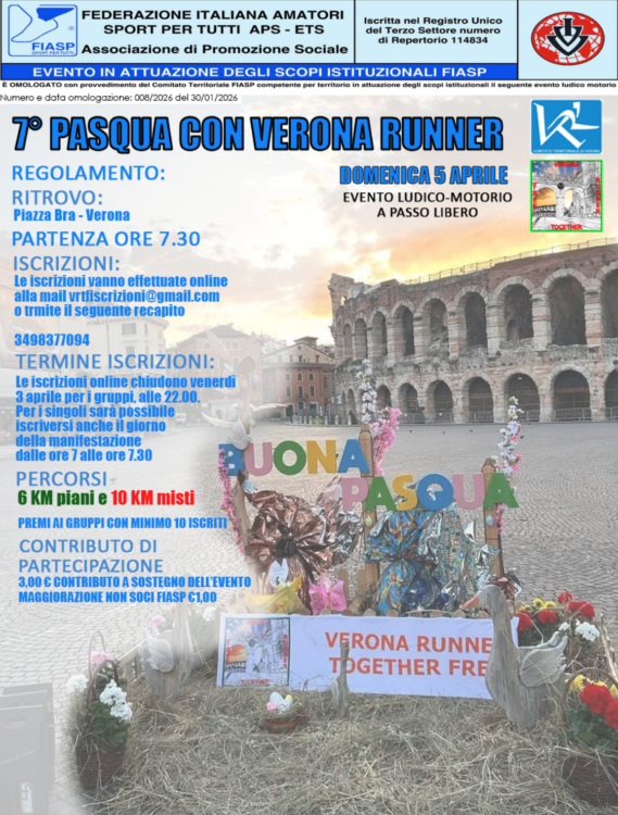 Settima manifestazione podistica amatoriale. Parte da Piazza Bra, la ‘7ª Pasqua con Verona Runner Together Free’, manifestazione podistica amatoriale con 2 percorsi: uno di 6 Km […]