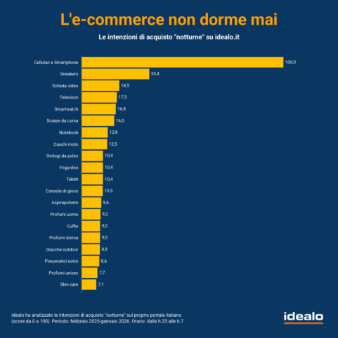 Gli italiani dormono poco e navigano di più: +32% di intenzioni di acquisto tra le 23:00 e le 7:00, secondo Idealo. Le giornate si allungano, le notifiche non si fermano mai e il confine tra lavoro e tempo libero è sempre più sottile. Il risultato? Gli italiani dormono meno e sempre più spesso restano connessi anche nel cuore della notte. In Italia la durata media del sonno è di circa 7 ore, ma chi si corica dopo mezzanotte scende poco sopra le 6 ore effettive, con una quota ridotta di sonno profondo. In questo scenario, la notte non è solo tempo di riposo mancato: è anche un momento in cui si naviga, si confrontano prezzi e si pianificano acquisti. La notte si conferma così uno spazio attivo di consumo e progettualità. Un fenomeno che emerge con ancora più forza in occasione della Giornata Mondiale del Sonno del 13 marzo, che ogni anno accende i riflettori sull’importanza del riposo e sulle nuove abitudini che stanno trasformando il nostro rapporto con la notte. Quando il silenzio della notte aiuta a concentrarsi, molti utenti approfittano di queste ore per informarsi, confrontare componenti e progettare il proprio setup ideale, che sia per lavoro o per gaming.