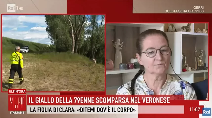 Ad intervenire in diretta anche Marta, la figlia di Clara: “Continuerò finché non trovo il corpo di mamma, sono sempre più convinta che mamma non c’è più, qualcuno me l’ha uccisa. Non saprei chi può aver fatto del male, non ho persone da giudicare, ma mamma era una persona forte e non si sarebbe mai suicidata, lo tolgo proprio il fattore del suicidio”. E ancora: “L’ho sempre vista con persone marocchine extracomunitarie, gente buona, le volevano tutti bene e non mi dava alcun pensiero. Ha sempre vissuto con mio figlio, io purtroppo ho dovuto trasferirmi in un altro paese perché mi ero fatta un’altra famiglia, però ogni tanto sentivo mamma anche per telefono”. Relativamente ai dissidi familiari che compaiono nella denuncia di scomparsa, ha spiegato: “I litigi c’erano quasi sempre perché mamma voleva che le cose andassero un po’ meglio: mio figlio non lavora purtroppo, mamma si arrabbiava perché doveva dare lei il sussidio per andare avanti in famiglia. Poi ecco c’era anche la compagna di mio figlio che lavora ma saltuariamente. La casa era proprietà di mamma. Se per una bolletta non pagata è venuta fuori questa litigata grossa non riesco a capirne più niente ormai”. “Ho saputo poi dove hanno messo mamma: aveva una cameretta dove mangiava, addirittura non mangiava neanche con loro – ha concluso -. Non mi aveva mai detto nulla, sapevo che portavano i pasti a casa, ed ero tranquilla. Con mio figlio ho parlato ma è molto difficile, non riesco troppo: ha una sua mentalità, un brutto carattere che offende e bestemmia e a me quelle cose non piacciono, già sto male per la scomparsa di mamma”.