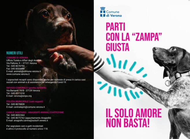 ‘Parti con la zampa giusta’ è l’iniziativa per rafforzare il legame tra uomo ed animali e instaurare quel rapporto di simbiosi che va oltre l’affettività e che, nella gestione quotidiana, fa la differenza. Si, perché, come sostiene chi gli amici a quattro zampe li conosce bene, il solo amore potrebbe non bastare per rendere felice il cane e inserirlo serenamente nel contesto familiare. Da qui l’idea del progetto promosso dal Comune, con focus su lezioni e corsi base, gratuiti o con agevolazioni, per i neo proprietari di cani di diverse specie. L’obiettivo, infatti, è quello di dare informazioni e indicazioni più utili possibili, che tuttavia variano dalla razza degli animali, dalla tipologia, dalle loro abitudini e caratteristiche. Ma andiamo a vedere le proposte: Associazione Gruppo Cinofilo Verona: 5 lezioni gratuite, di cui 3 lezioni ravvicinate all’adozione e 2 in tempi successivi per monitorare i progressi, previo appuntamento presso il campo che ha sede in via Bionde c/o Forte Chievo. Poi, Cangrande Agility Team: 2 lezioni gratuite, previo appuntamento in via Cà di Cozzi 2, il Centro Cinofilo Edu CAN Do: 4 lezioni gratuite comprendenti parte teorica e pratica con possibilità, su richiesta, di provare a cimentarsi nelle discipline di Agility Dog e di Rally Obedience, presso il Parco Ottocento a Boscomantico, il Dog Club Scaligero: 3 lezioni gratuite a binomio, fino a un massimo di 5 cani, previo appuntamento in via Lungadige Attiraglio 48/P, il Gruppo Cinofilo Verona Romano Sparapan: 5 lezioni gratuite individuali, previo appuntamento. Infine, l’Hirpus Scuola Cinofi la Apssd: 6 lezioni gratuite, previo appuntamento.