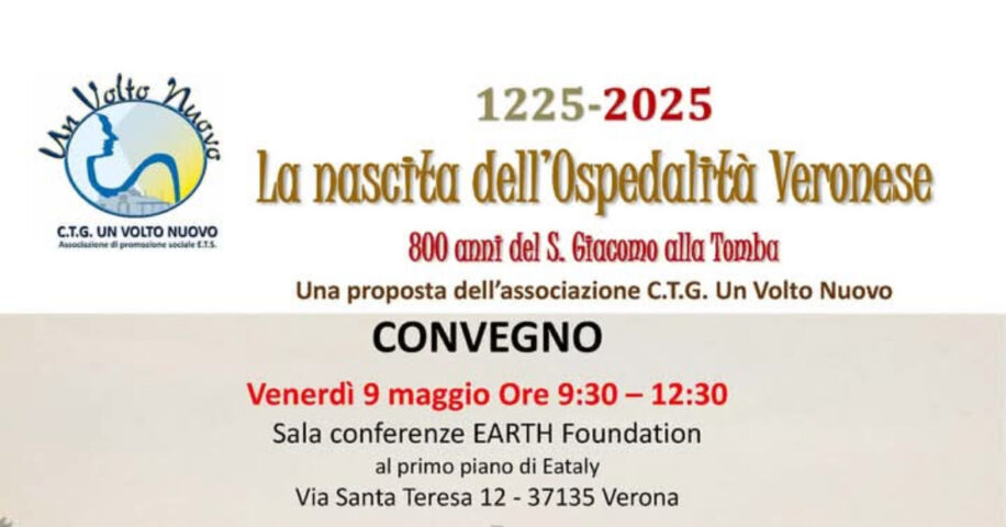 Nel 1225, a seguito del terremoto che colpì Verona due anni prima, autorità civili e religiose decisero di istituire un unico ospedale cittadino per i lebbrosi: San Giacomo alla Tomba, nei pressi dell’Adige, in zona Basso Acquar. Un gesto che segnò l’inizio di una ‘nuova politica sanitaria’ e della trasformazione dell’ospedale in istituzione pubblica, difesa e sostenuta nel tempo. A otto secoli di distanza, l’associazione CTG ‘Un Volto Nuovo’ propone un programma di eventi per riscoprire le radici dell’ospitalità veronese. Il primo appuntamento è venerdì 9 maggio con un convegno aperto al pubblico presso la sala conferenze EARTH Foundation (Eataly, via Santa Teresa 12), dalle 9:30 alle 12:30. Interverranno storici, studiosi, rappresentanti delle istituzioni e del mondo religioso, per raccontare il contesto politico e sociale del tempo, le trasformazioni dell’ospedale e la memoria conservata nei documenti e nelle opere d’arte. Il programma prosegue sabato 10 maggio con una biciclettata tra i luoghi storici dell’ospitalità, dal Lazzaretto alla chiesa dei SS. Giacomo e Lazzaro al Policlinico (partenza ore 10:00 da Eataly), e domenica 11 maggio con una passeggiata guidata nello stesso itinerario, per riscoprire a piedi le tracce dell’antico ospedale e del territorio di Borgo Roma. Tre giornate per guardare al passato e riflettere sul valore civile e umano dell’accoglienza, ancora oggi quanto mai attuale, con numerosi interventi tra cui docenti, presidenti e attori. Modererà il tutto il giornalista Maurizio Pedrini