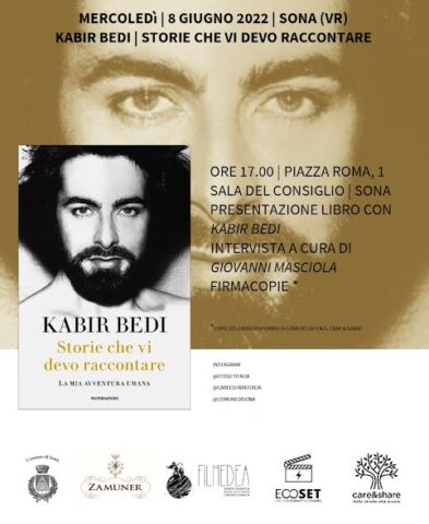 Il prossimo 8 giugno, alle ore 17 presso la Sala del Consiglio in Piazza Roma 1, Kabir Bedi, noto attore indiano che ha interpretato uno dei personaggi televisivi più amati dal pubblico italiano, Sandokan, ha scelto Sona per la presentazione del suo ultimo libro ‘Storie che vi devo raccontare’. Sandokan è stata una serie televisiva trasmessa dalla Rai in sei episodi nel 1976 che ha tenuto incollati milioni di spettatori, attratti dalle vicende della Tigre della Malesia, il pirata gentiluomo tratto dai romanzi del veronesissimo Emilio Salgari. Un avvenimento importante per Sona e un’emozione grandissima anche per quelli della generazione anni ’70, per i quali Kabir Bedi rappresenta l’incontro con un mito dell’infanzia e della giovinezza. La visita nel veronese fa parte di un tour che tocca sei città, da Milano a Venezia. Il ricavato della vendita dei libri e della raccolta fondi sarà destinato agli orfani della Mangoes Home di Vijayawada in India.