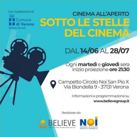 Prende il via proprio questa sera, la rassegna di pellicole all’aperto al campetto di via Biondella, 9, ‘Sotto le stelle del cinema’, organizzata dall’Associazione Believe, patrocinata dall’Assessorato alle Politiche Giovanili e realizzata in collaborazione con il Circolo NOI San Pio X – Biondella e lo sponsor hp23. Fino al 28 luglio saranno proiettati film per tutti, per trascorrere una serata di svago all’insegna della magia del cinema sotto le stelle. Tra i film in programma Ennio, Sing 2, Marilyn ha gli occhi neri, Una famiglia vincente – King Richard e tante altri. L’appuntamento di oggi sará con Ennio, di Giuseppe Tornatore. Le proiezioni saranno ogni martedì e giovedì con inizio alle ore 21.30. Il costo del biglietto è di 5 euro ed è acquistabile direttamente al campetto, oppure sul sito https://www.liveticket.it/believe. In caso di pioggia a proiezione iniziata, non sarà rimborsabile. Per informazioni sulla programmazione, eventuali segnalazioni in caso di tempo incerto e per restare aggiornati sulle iniziative di Believe APS, ci si può iscrivere anche al canale Telegram dell’associazione https://t.me/believeaps oppure andare sul sito www.believegroup.it