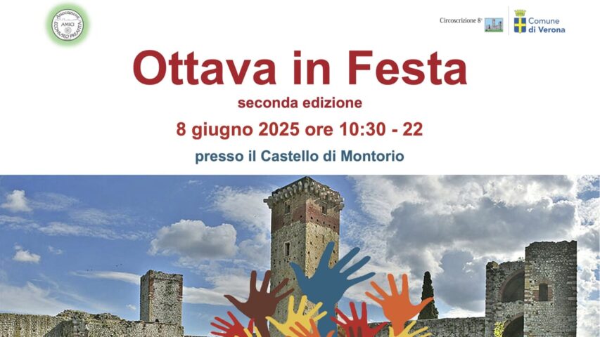 Domenica 8 giugno il Castello di Montorio si trasforma in uno spazio aperto alla cultura, alla musica, allo sport e alla solidarietà, grazie alla seconda edizione di Ottava in Festa, promossa dalla Circoscrizione 8ª per valorizzare l’impegno delle associazioni del Terzo Settore. Dalle 10.30 alle 22 il pubblico potrà partecipare a laboratori, visite guidate, attività per tutte le età, musica dal vivo, giochi e momenti di incontro. Un’occasione per conoscere da vicino le realtà che operano ogni giorno nel sociale, nella cultura e nell’ambiente. Il prato e il frutteto del Castello saranno lo sfondo di una giornata partecipativa e gratuita, con stand, area ristoro, gonfiabili e spettacoli. Tra gli appuntamenti: i concerti di Alef Zero, la Banda di Montorio con il Corpo Bandistico di Illasi, Hierbamala e le coreografie dell’ASD Moondance. L’ingresso è libero. In caso di maltempo, l’evento potrebbe essere rinviato.