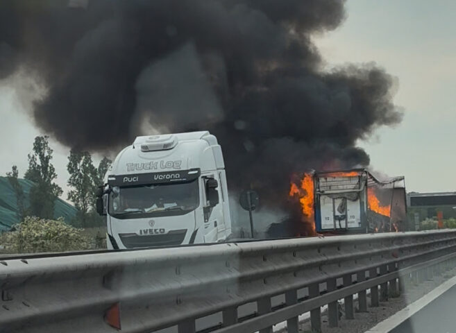 Traffico paralizzato e colonne chilometriche di auto: è il primo bilancio in tempo reale del maxi-ingorgo verificatosi oggi lungo la tangenziale, all’altezza dello svincolo per il casello di Verona Nord. Poco dopo le 17:00, un rimorchio ha improvvisamente preso fuoco mentre era in marcia, trasformandosi in pochi minuti in un rogo spaventoso. Le cause sono ancora in fase di accertamento. Fumo nero visibile a chilometri di distanza e carreggiata completamente invasa dalle fiamme che ha costretto gli automobilisti a fermarsi a distanza, provocando un effetto domino sul traffico. Sul posto i Vigili del Fuoco, impegnati nello spegnimento dell’incendio e nella messa in sicurezza dell’area.