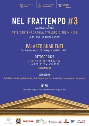 Tele impossibili da tradurre in parole. Strutture di carta che si adattano ai luoghi che le accolgono. Colori berberi di tessuti e tappeti tra affreschi settecenteschi. Ottobre è il mese dell’arte contemporanea a Valeggio sul Mincio, dove ritorna Nel Frattempo#3 – Meanwhile. L’Esposizione è ideata dall’artista di fama internazionale Lucio Pozzi, a cura quest’anno di Lorenza Sannai e voluta dall’associazione culturale Percorsi, presieduta da Marileno Brentegani, e dall’assessorato alla Cultura guidato dal vicesindaco Marco Dal Forno. Sarà inaugurata il 6 ottobre, alle 18.30, si potrà visitare nei fine settimana fino al 23 ottobre e si innesta come evento collaterale ad Artverona, la prestigiosa fiera d’arte che ogni anno si tiene in Fiera a Verona. Spirito della mostra è quello di far intrecciare l’opera contemporanea con le suggestive atmosfere di luoghi dismessi o sconosciuti, come è l’ala da ristrutturare di Palazzo Guarienti, il settecentesco edificio di via Antonio Murari, già sede della scorsa edizione di Nel Frattempo#2 curata da Arthur Duff. Nelle tre stanze al pianterreno, all’ingresso e nel salone della parte nobile saranno esposte circa quindici opere di Raffaella Formenti, Carmengloria Morales, Maria Morganti, Lucio Pozzi, Antonio Secci, Lorenza Sannai e Luca Sguaitzer.