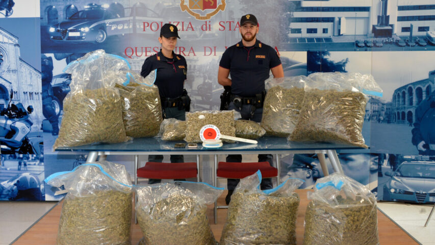 A Villafranca, nella giornata di lunedÌ, la sezione antidroga della Squadra Mobile della Questura di Verona ha arrestato un uomo e l’ha colto in flagranza di reato di detenzione ai fini di spaccio di circa 40 chili di marijuana. Operazione frutto della collaborazione della Squadra Mobile con la Polizia Stradale di Bardolino. Verso le 10.30 di lunedì, le pattuglie che si stavano occupando di effettuare controlli antidroga hanno fermato un’auto in via Valeggio. Da subito gli agenti hanno notato grandi borsoni neri appoggiati sui sedili posteriori e sono scattati i controlli, accertando poco dopo che le borse contenevano marijuana. Dichiarato nell’immediato lo stato di arresto e dopo le attività di rito, il procuratore Silvia Facciotti ha fatto condurre l’uomo a Montorio. L’udienza di convalida si è svolta nella mattina di giovedì, al termine della quale il Gip ha convalidato il provvedimento e disposto la misura cautelare della custodia in carcere.